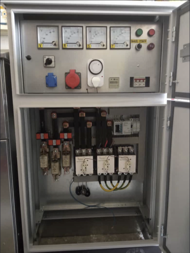 Görselde gösterilen pano yeni bir motor kumanda panosudur. Sahada bulunan panolar kullanım hataları, bakımsızlık, yetkin olmayan tamirler gibi sebepler çok daha pis ve dağınıktır.