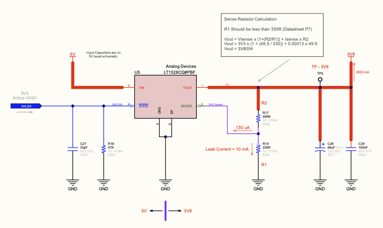 LT1528 ile termal kayıp oluşur; bu yüzden 3V8 hattının termal tasarımı (bakır alan, via, yerleşim) R6’da tasarımın parçasıdır.